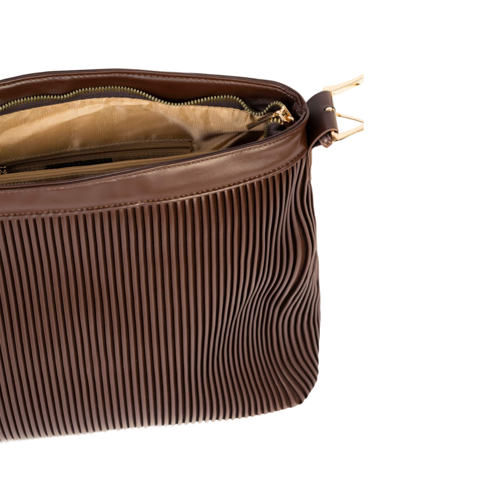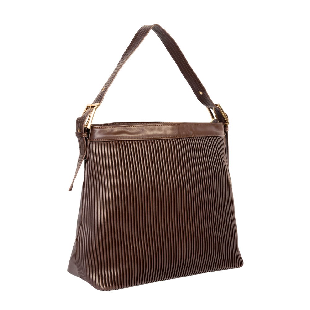 Textured Brown Pleated Tote Bag